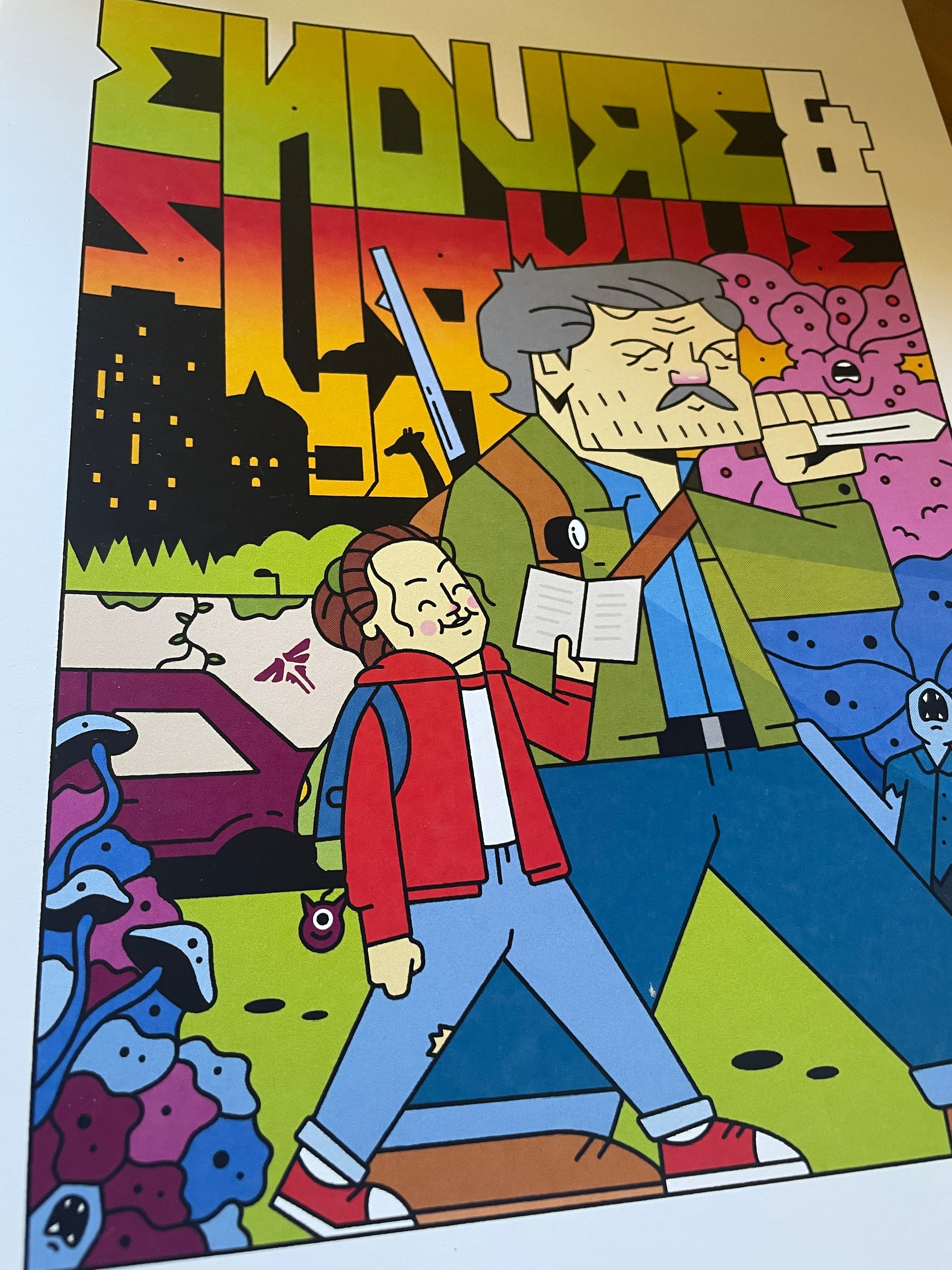 This Print inspired by the new hit tv show "The Last of Us" based upon my favourite video game. The print feature everyones favourite Joel and Ellie, a big scary(cute) bloater and of course those Pesky clickers!